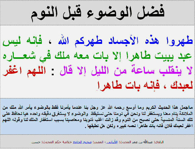 فضل الوضوء قبل النوم الونشريس التعليمية