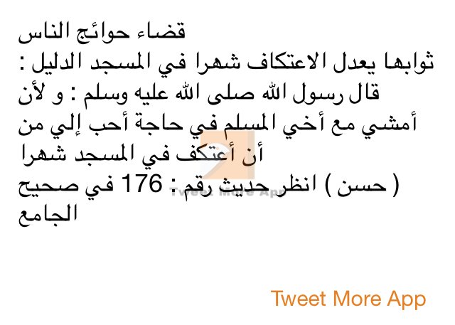 التوكل Twitterissa قضاء حوائج الناس ثوابھا يعدل الاعتكاف شھرا في المسجد الدليل قال رسول الله صلى الله عليه وسلم و ل