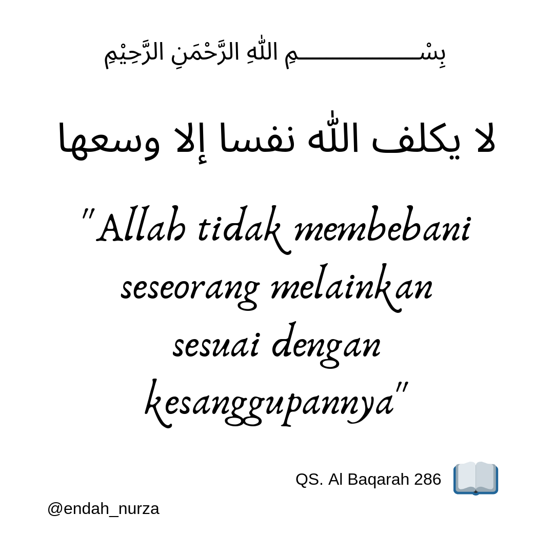 لا يكلف الله نفسا الا وسعها Alah Tidak Membebani Seseorang Melainkan Sesuai Dengan Kesanggupannya Qs Al Baqarah 286 Isl Motivasi Mahasiswa Agama