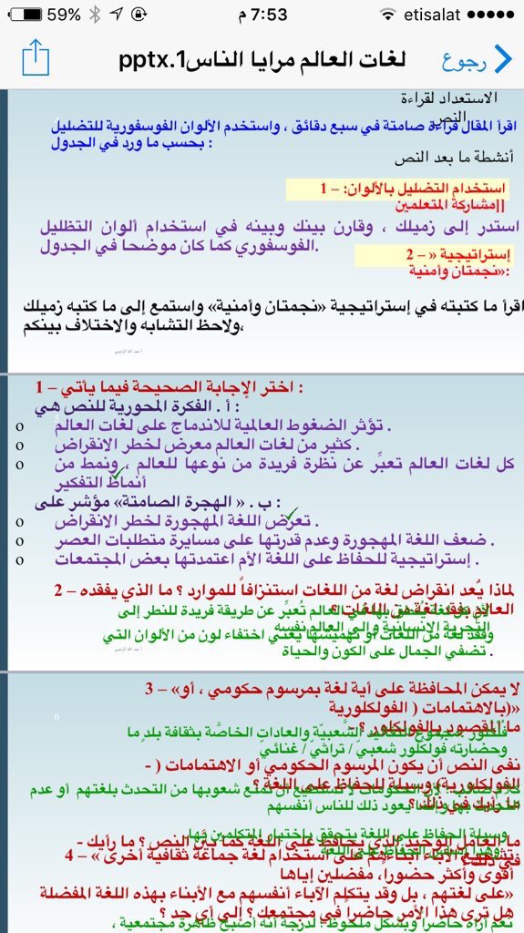 بوربوينت حلول درس لغات العالم مرايا الناس لمادة اللغة العربية الصف الحادي عشر عام الفصل الاول منتديات صقر الجنوب