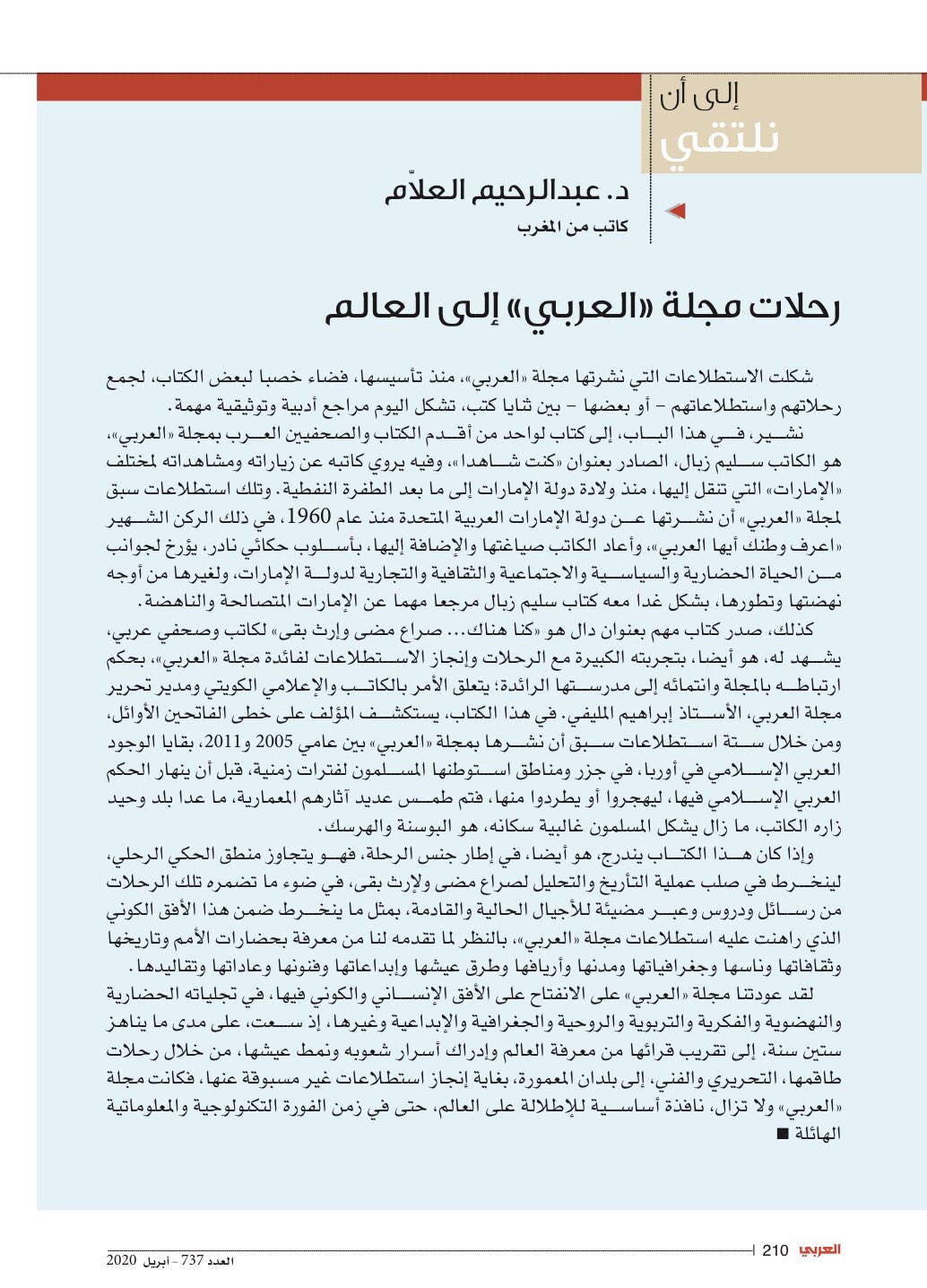 Alarabi مجلة العربي On Twitter الى أن نلتقي مجلة العربي عدد ابريل 2020