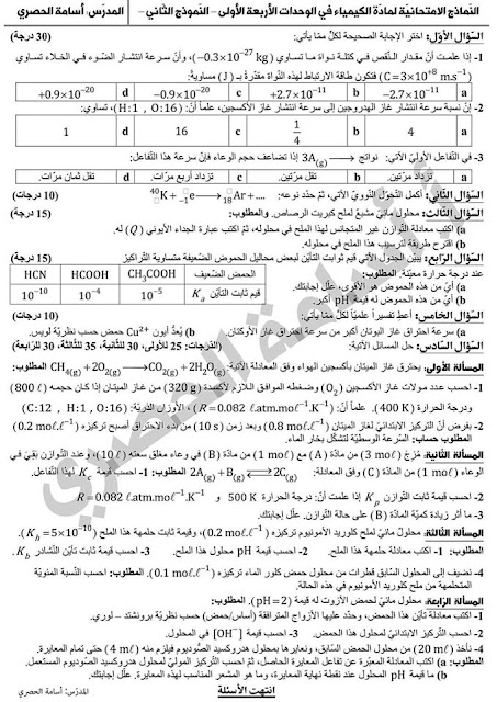 5 نماذج امتحانية شاملة في الوحدات الأربعة الأولى كامل الكتاب ماعدا الكيمياء العضوية بكالوريا 2020 منهاج حديث