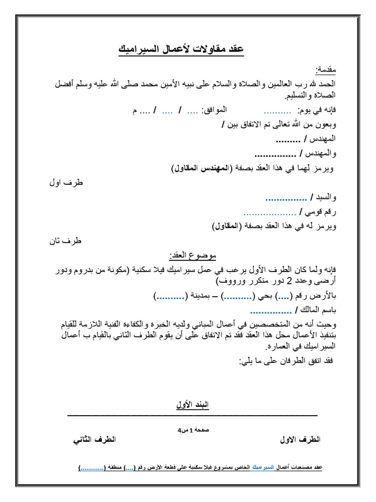 عقد مقاولات سيراميك