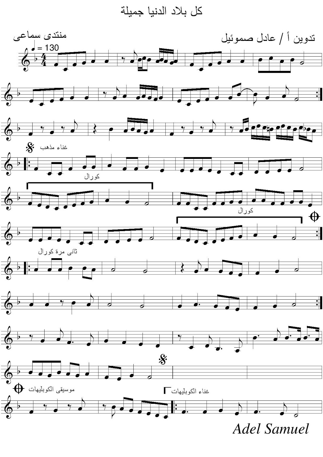 مدرسة الموسيقى نوتة أغنية بتونس بيك للفنانة وردة فيسبوك