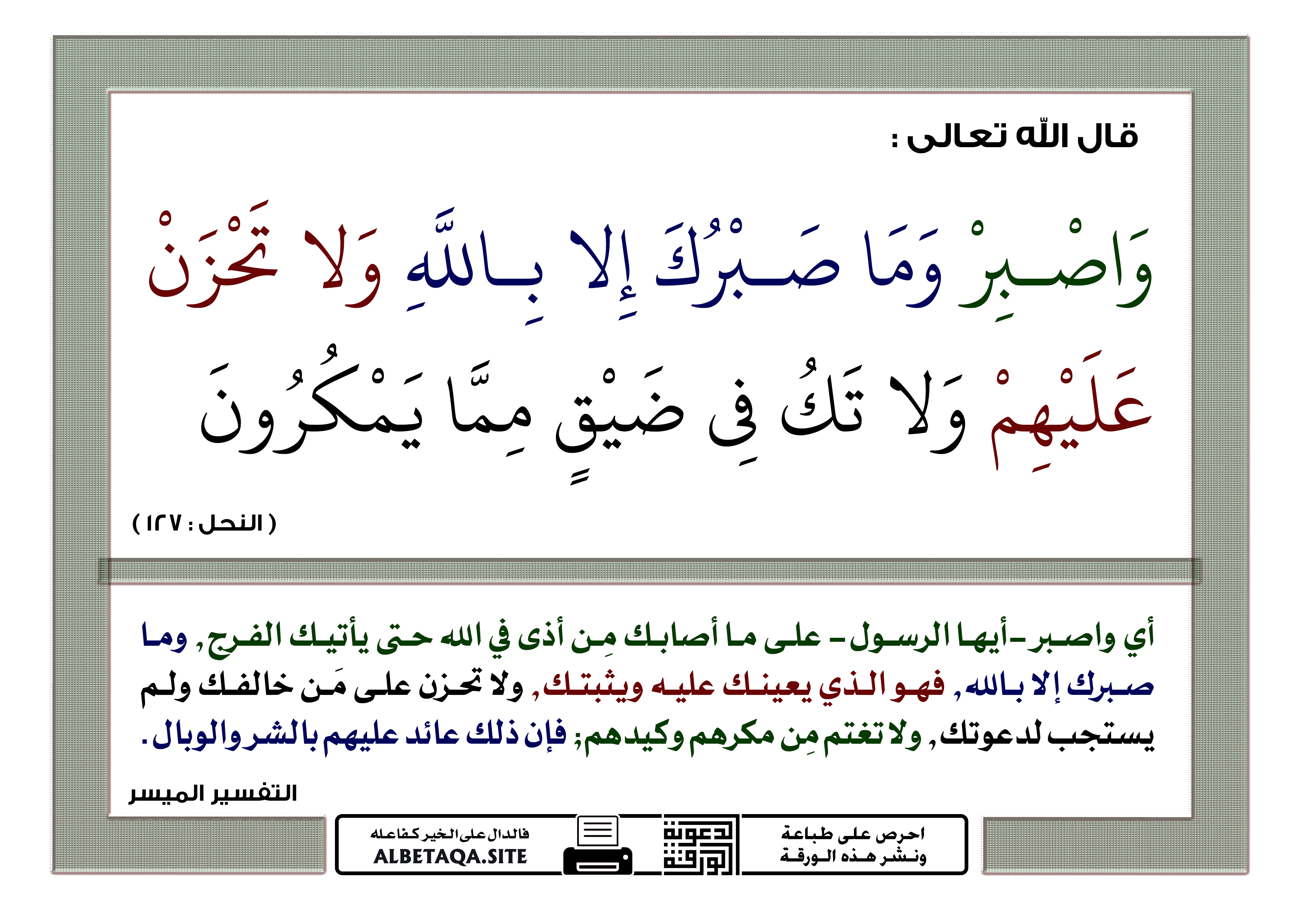 واصبر وما صبرك إلا بالله موقع البطاقة الدعوي