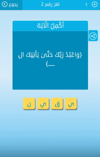 جواب لغز واعبد ربك حتى ياتيك ال من لعبة رشفة اللغز رقم 2 من المجموعة الاولى صقور الإبدآع