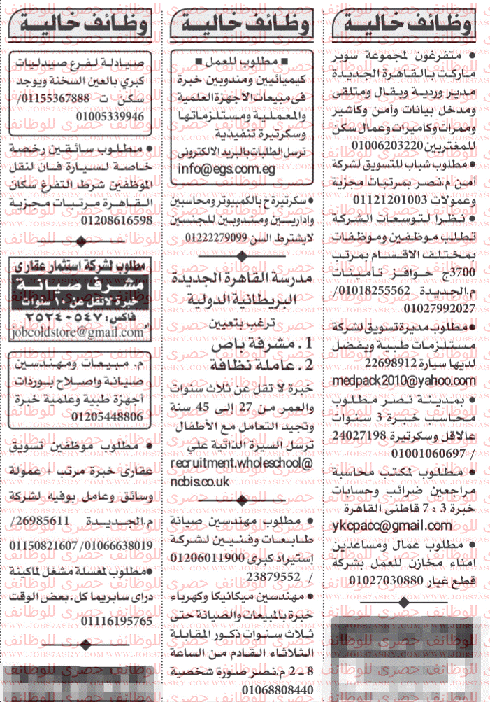 وظائف جريدة الاهرام الجمعة