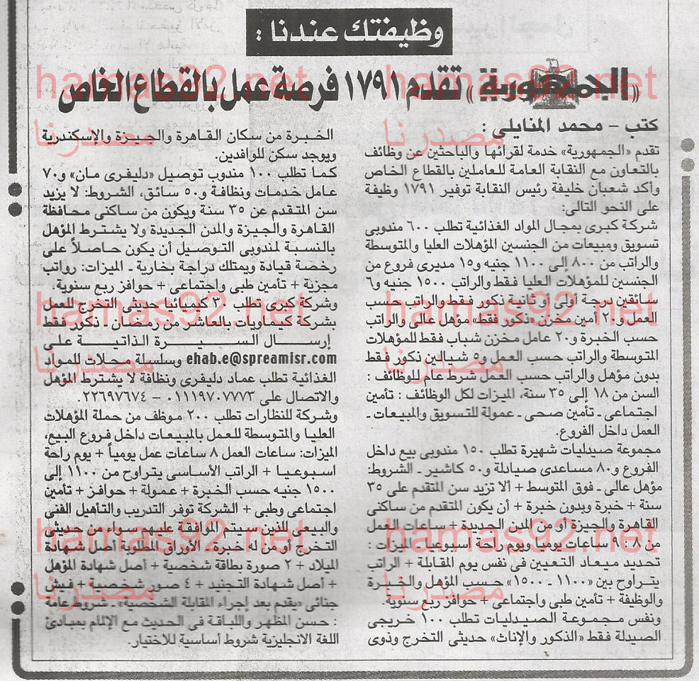 وظائف جريدة الجمهورية المصرية اليوم 20 6 2015 وظائف خاليه