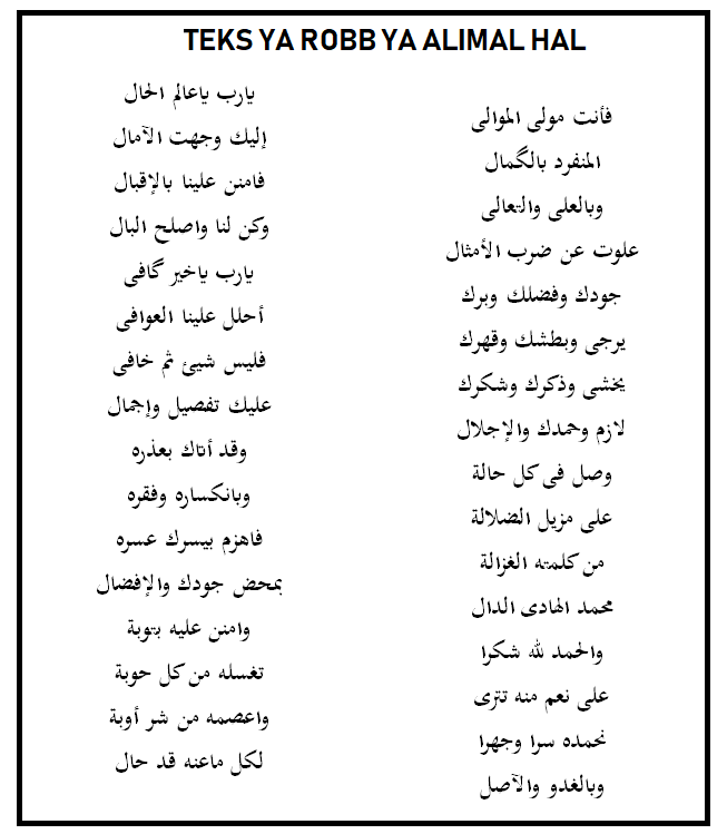 Ya Robbi Ya Alimal Hal Lirik Arab Dan Latin Beserta Artinya